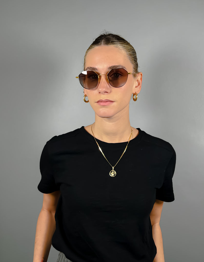 מסגרת מתכת מוזהבת עם עדשות אפרפרות-סגלגלות