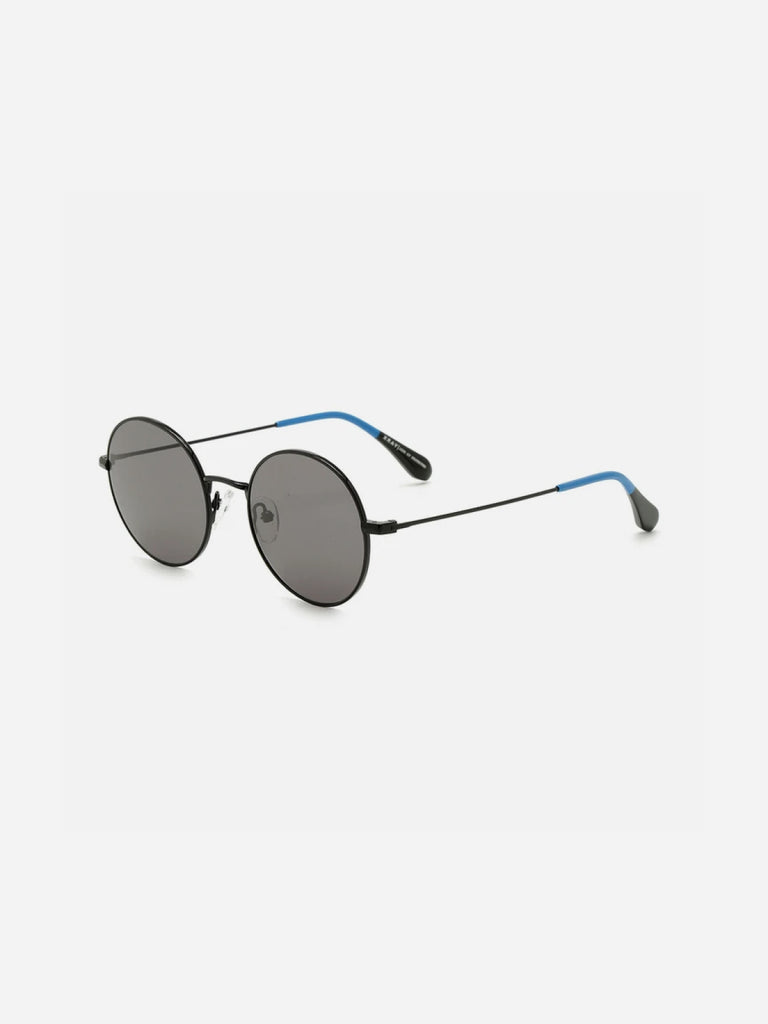 מסגרת מתכת עגולה שחורה עם עדשות פולוראיד אפורות , מתאימה לבעלי פנים בינוניות עד רחבות