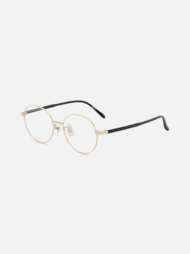 מסגרת מתכת קלת משקל מעודנת בצבע זהב בעלת צורה מעוגלת. מתאימה לכל סוגי הפנים