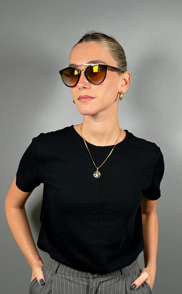 מסגרת אינג׳קשן שחורה בעלת גשר עם עדשות חומות מתאימה למבנה פנים צרות עד בינוניות