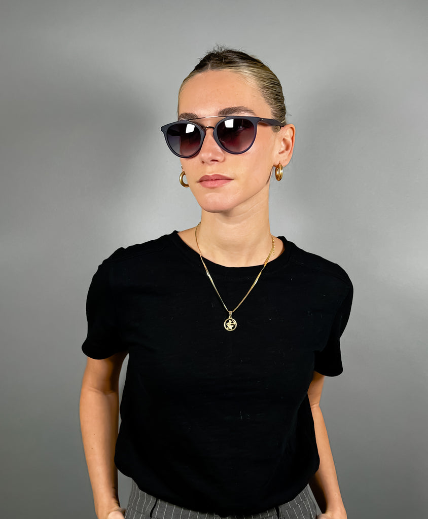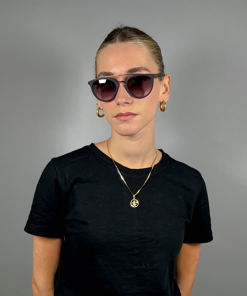 מסגרת אינג׳קשן כחולה בעלת גשר עם עדשות תכולות אפורות מתאימה למבנה פנים צרות עד בינוניות