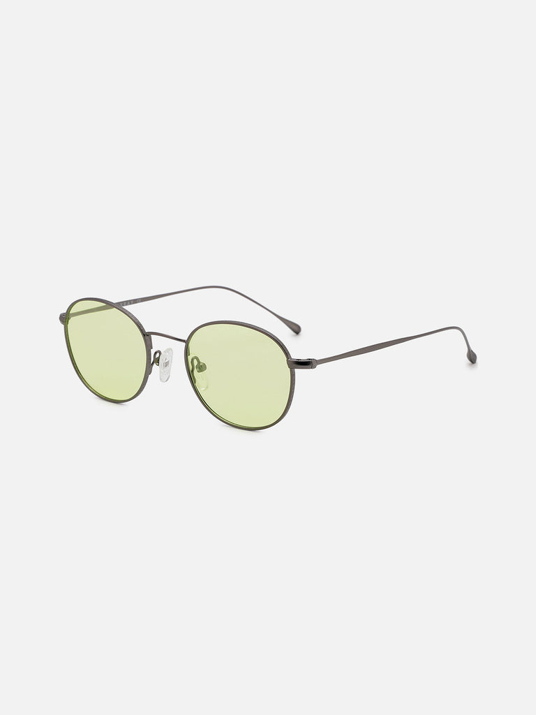 מסגרת טיטניום קלת משקל בצורה אובלית ובצבע כסף תעשייתי, עם עדשות פולוראיד ירוקות בהירות מתאימה לכל מבני הפנים מלבד רחבות מאוד.